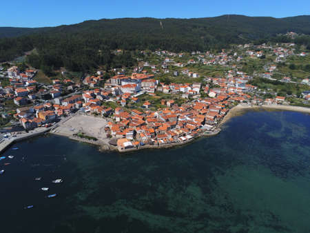 An aerial view of the beautiful Combarro village in Galicia, Spain
