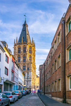 COLOGNE, GERMANY, AUGUST 11, 2018: Street leading to the Saint Martin church in Cologne, Germany