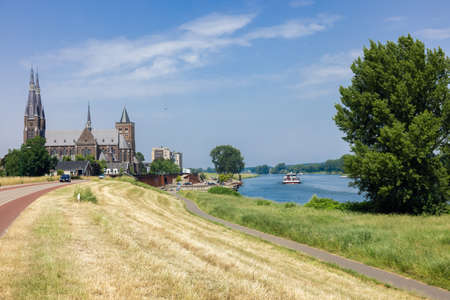 Dutch village Cuijk along river Meuse, view at Martinus church
