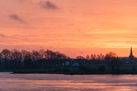 Rhenen a rustic town in the Netherlands, cityscape at the water during sunset