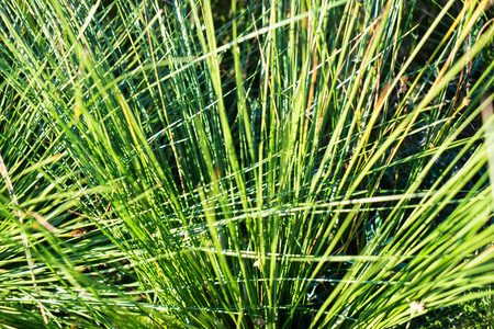 Closeup zoom top view of long leafs plant in garden.