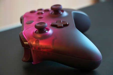 MOSCOW, RUSSIA - May 09, 2020: Pink Xbox Game Controller close up