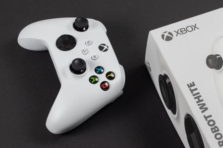 Xbox Series S game controller on dark - August 30, 2023 - Dnipro, Ukraine.