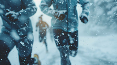 A team of winter sports athletes performing intense exercises in the freezing cold using the harsh conditions to improve their endurance and strength