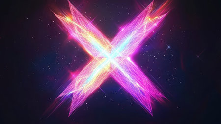 Visualize a neon X, intricately interwoven with shimmering geometric facets, emanating ethereal light within a deep, black void, resulting in a stunning 4k composition --chaos 30 --ar 16:9 --v 6.1 Job ID: 9108435d-5d8b-440d-82cc-cb757a9751e2