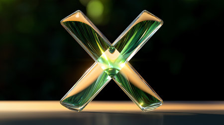 Green and gold glass X symbol with a shiny and modern design.