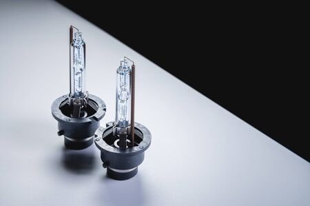 Xenon is a new two lamp for automotive headlights on a gray gradient background. Gas-discharge lighting devices