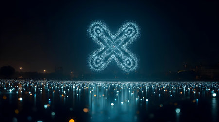 Qr code formed by drone swarm lights, AI generated image