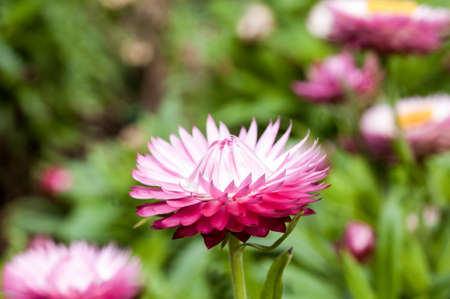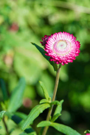Pink flower of Helichrysum bracteatum in garden