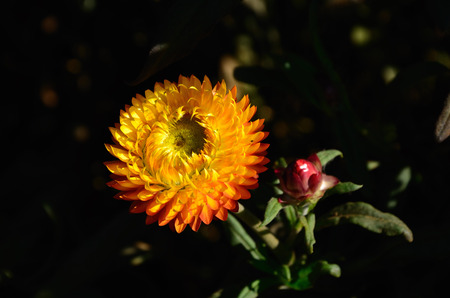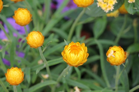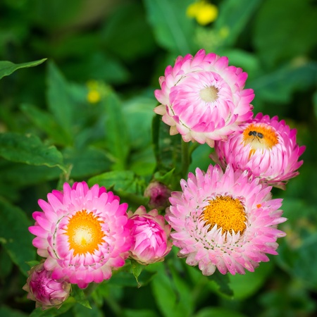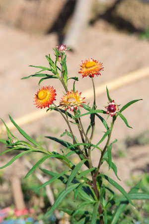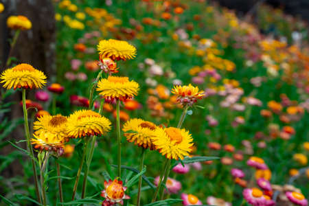 Helichrysum or Straw flower in outdoor garden.