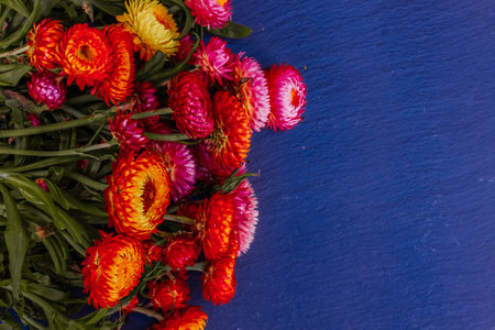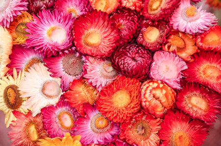 Top view of beautiful everlasting flowers close up