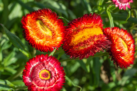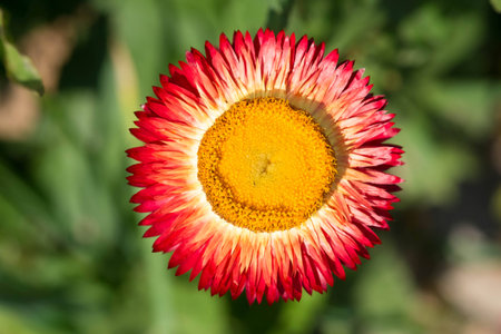 Red and white Xerochrysum bracteatum Flower or straw flowers 0r golden everlasting .