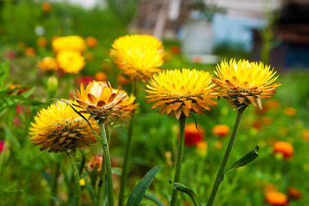 Yellow everlasting flower in the garden