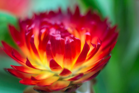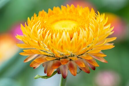 Beautiful straw flower (everlasting) close-up on blurred background, Helichrysum bracteatum (Venten.) Willd.