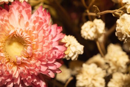 Dried pink flowers closeup. floral background