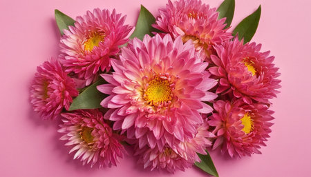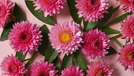 Beautiful pink chrysanthemums on a pink background.