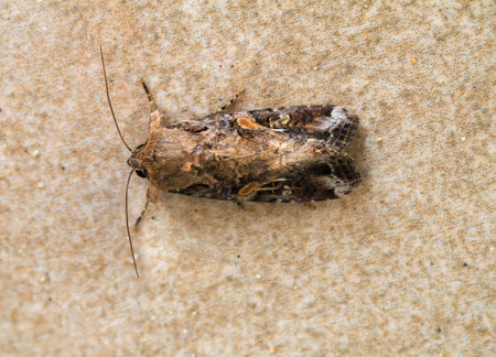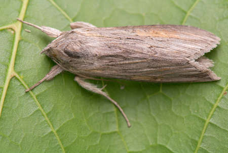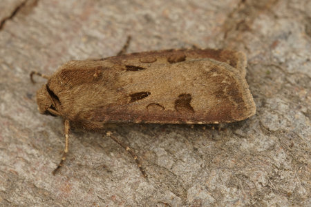 Natural Detailed closeup on the white-point owlet moth, Mythimna albipuncta sitting on wood