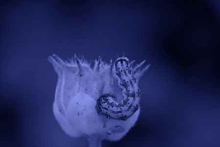 butterfly larvae on abutilon fruit, closeup of photo