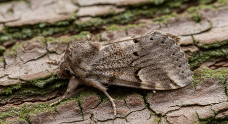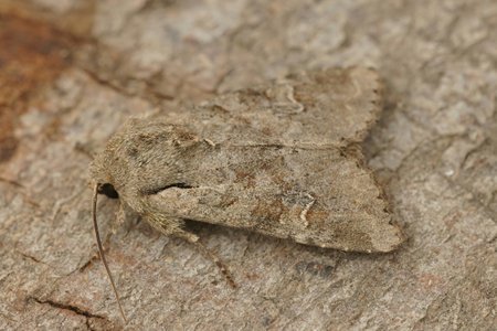 A closeup shot of the Early Grey moth, (Xylocampa areola)