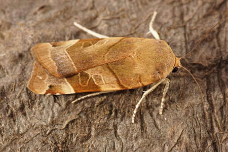 Closeup on the lesser yellow underwing moth, Noctua comes on a piece of wood
