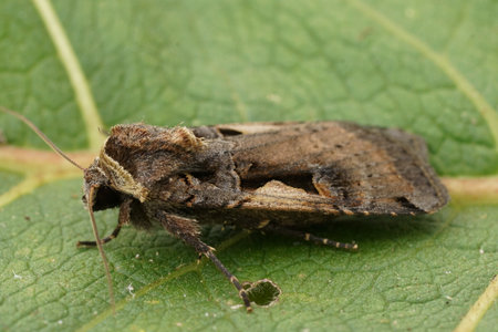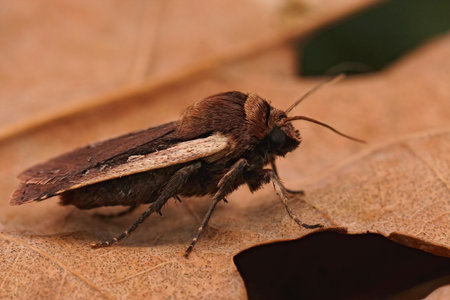 Detailed closeup on a Setaceous Hebrew Character owlet moth, Xestia c-nigrum
