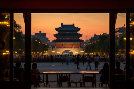 Witness the breathtaking beauty of Jianlou as seen through the arch of Zhengyang Gate in Beijing, China. This captivating image unveils the ancient splendor of Beijing's historic architecture. The intricate details and majestic structure of Jianlou are framed perfectly by the iconic Zhengyang Gate. As the gateway to the Forbidden City, Zhengyang Gate holds a significant place in China's cultural heritage. This image captures a mesmerizing blend of past and present, inviting viewers to explore the rich history and cultural treasures of Beijing. Perfect for showcasing China's architectural wonders, historical landmarks, travel photography, and the allure of ancient culture