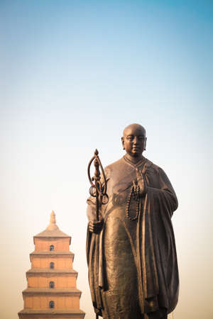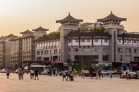 XI'AN, CHINA - AUGUST 5, 2018: Buildings at the square in front of the Big Wild Goose Pagoda in Xi'an, China