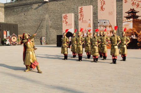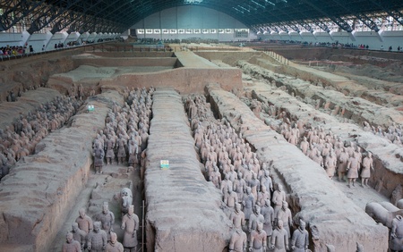 XIAN, SHANXI, CHINA - October 16, 2013: ancient Terracotta Army of Qin Shi Huang, the first Emperor of China, inside Terracotta Army crater in Lintong District, Xian City, Shanxi Province, China