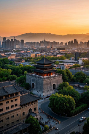 Xian drum tower (guluo) in Xian ancient city of China sunset