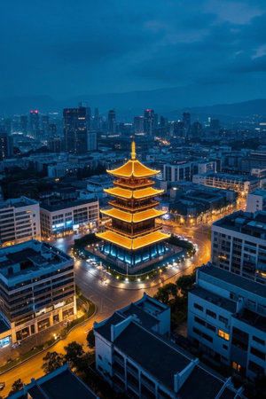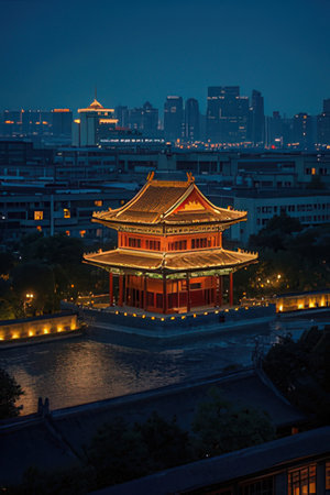 The ancient capital has splendid pavilions at night, a cultural landmark in the city skyline