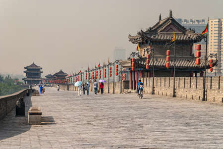 XI'AN, CHINA - AUGUST 3, 2018: Top of the City walls of Xi'an, China
