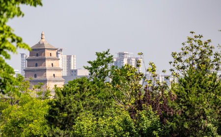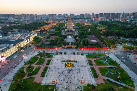aerial view of Xi'an cityscape, Giant Wild Goose Pagoda, Shaanxi, China