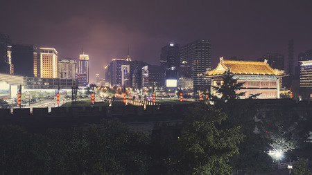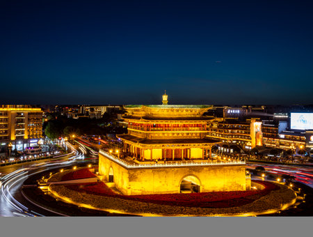 XIAN, CHINA - 17 OCTOBER 2018: The Bell tower in Xian illuminated at night