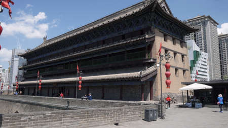 Xi'an,CHINA-SEPTEMBER 18, 2020: Drum Tower was built in 1380 and is one of the most intact ancient buildings.
