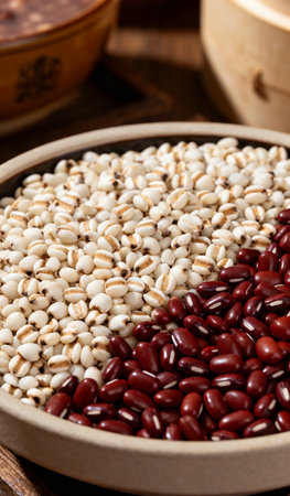 raw beans in a cup on the background