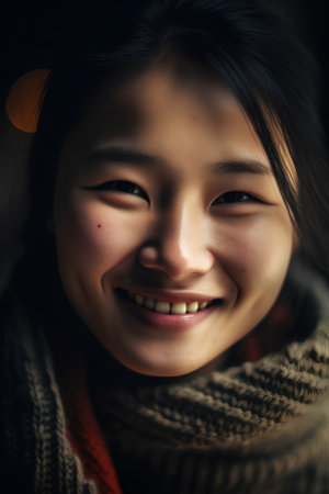 Portrait of a young asian woman wearing a scarf and smiling