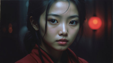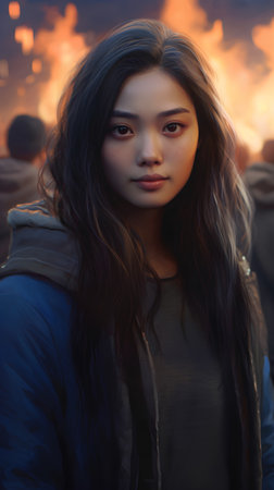 An AI generated illustration of a young Asian female adult looking confidently into the camera