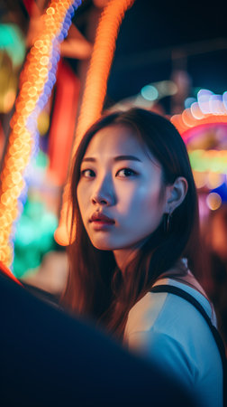 Portrait of a beautiful Asian woman in the city at night.