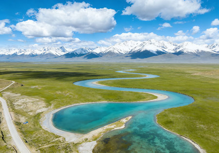 Xinjiang Kanas Snow Mountain River Grassland Scenery