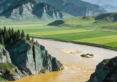The Musi Township River after the rain in Yili, Xinjiang, China