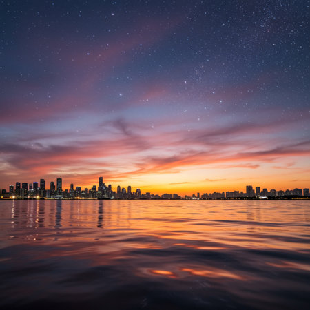 Sunset Skyline Reflection on City River