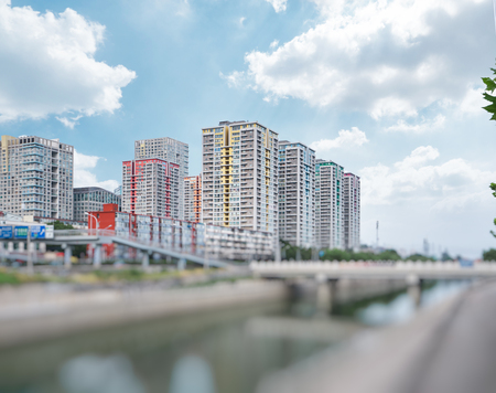 Typical modern apartments of South Korea with canal in front of them