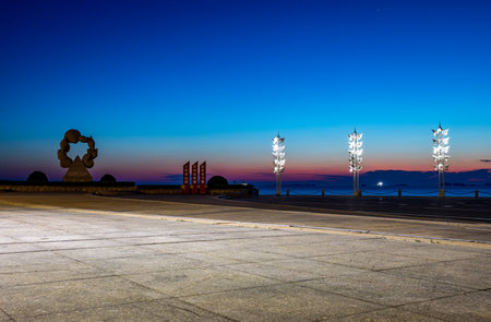 Beautiful night view of the seaside promenade in China