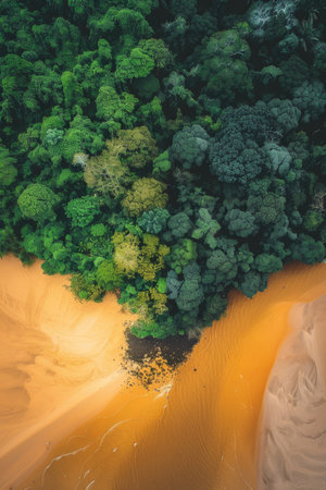 Lush Rainforest Meets Stark Sandy Desert with River as Dividing Line