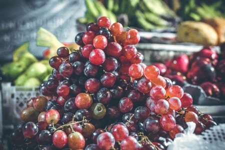 Fresh ripe red grapes in the market. Red grapes background.