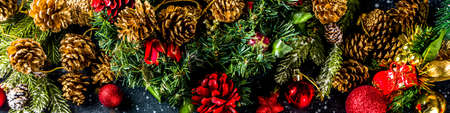 Christmas composition. Modern Xmas background. Free space for text, copy space.
