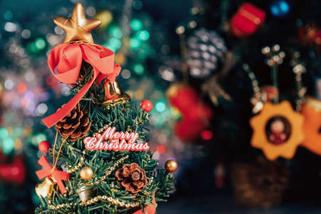Christmas background. christmas tree and bokeh light, christmas decorations for new years celebration, christmas holiday, new year holiday, festival, Xmas background concept, vintage color tone