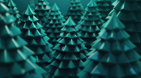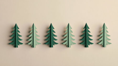 This artistic image showcases a row of green and blue trees against a soft neutral background, perfect for holiday or nature-themed projects.