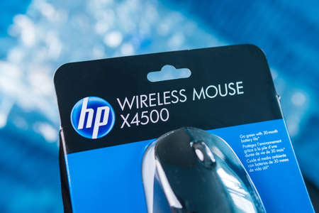 Tyumen, Russia-June 08, 2021: Office mouse from HP x4500.