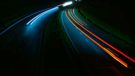 Night city traffic blurred cars long exposure lights evening highway lane movement fast transit car motion auto illuminated vehicle transportation street high speed light trails abstract background